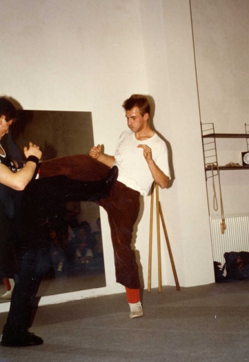 He who is being attacked by a kick to the head, can disturb the kick at any time. The phase, in which he can interfere depends on the dynamic change in distances. Means, the foot is constantly subject to disturbance on its trajectory to the head – at which it is of no importance at which point the kick can be disturbed, but rather that it can be disturbed at all - what has a decisive effect on the dynamic change of equilibrium.